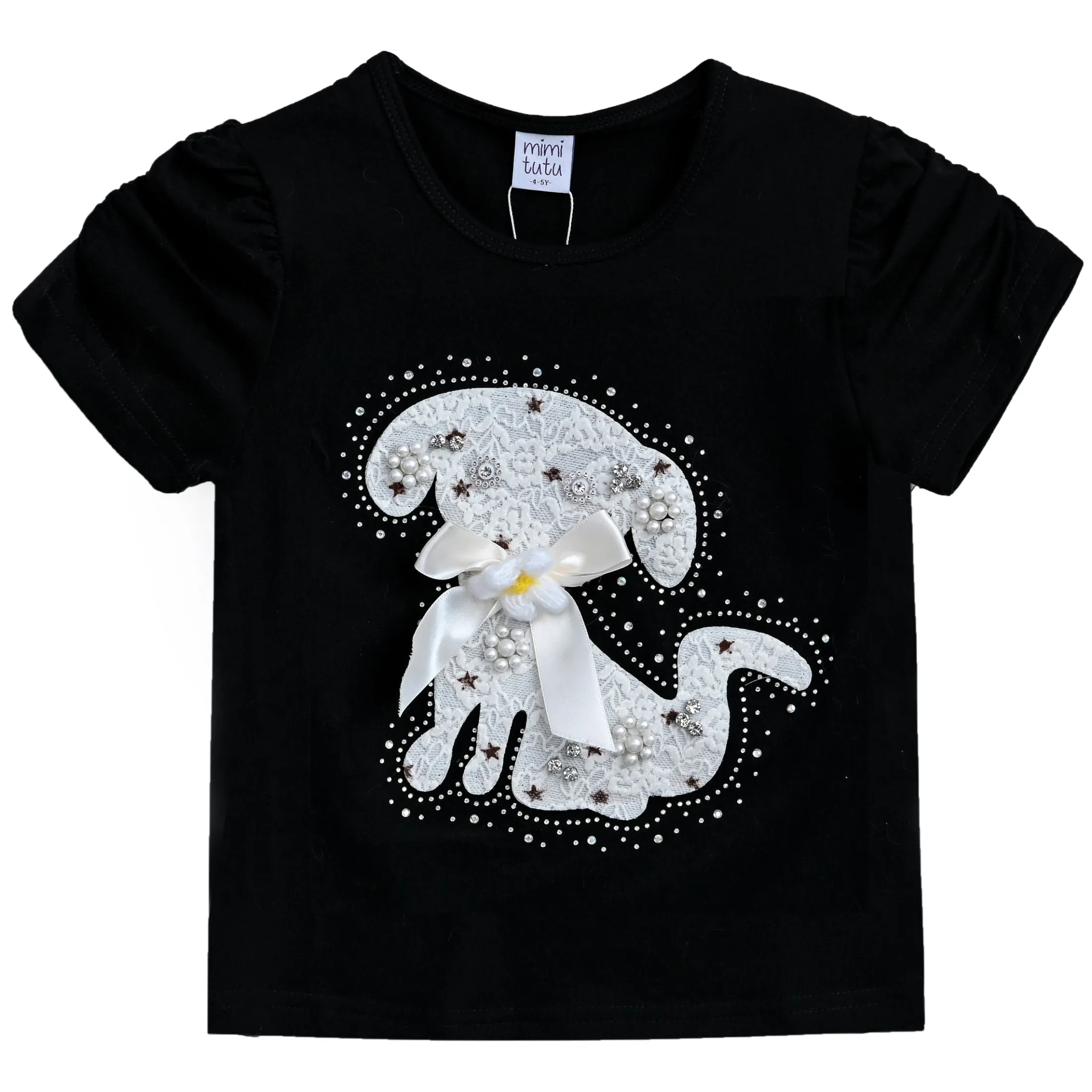 The Black Puppy Applique T-shirt for kid and baby girls from Mimi Tutu is an adorable and comfortable addition to any wardrobe. Crafted from soft black cotton, this tee features a charming puppy applique on the front. Firstly, the round neck design ensures a comfortable fit for your child.