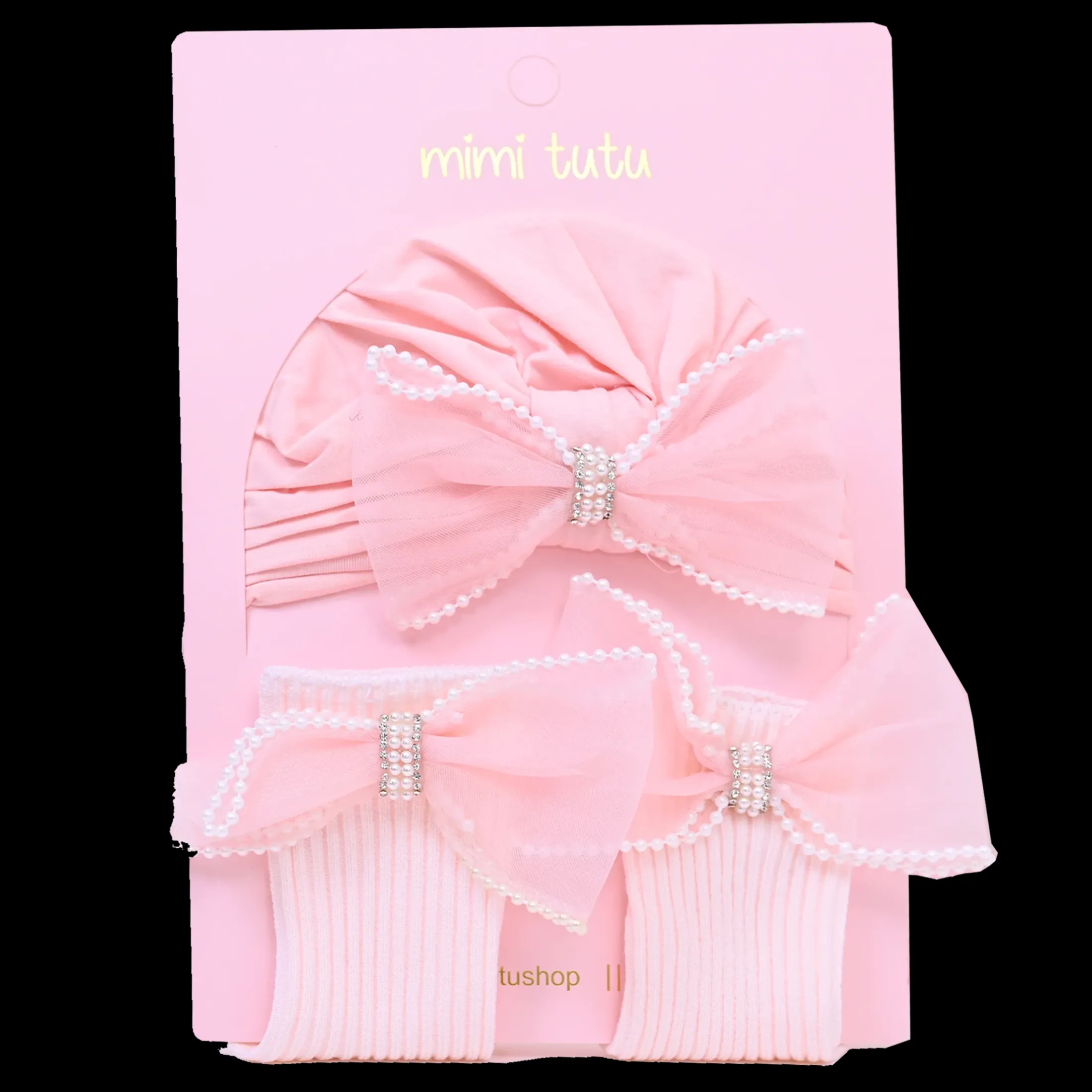 Presenting the delightful Pink Bow Pearl Lined Gift Set by Mimi Tutu, a charming blend of comfort and style crafted for little girls. Made from 100% cotton, this set offers an incredibly soft feel, making it perfect for newborns and toddlers alike.
