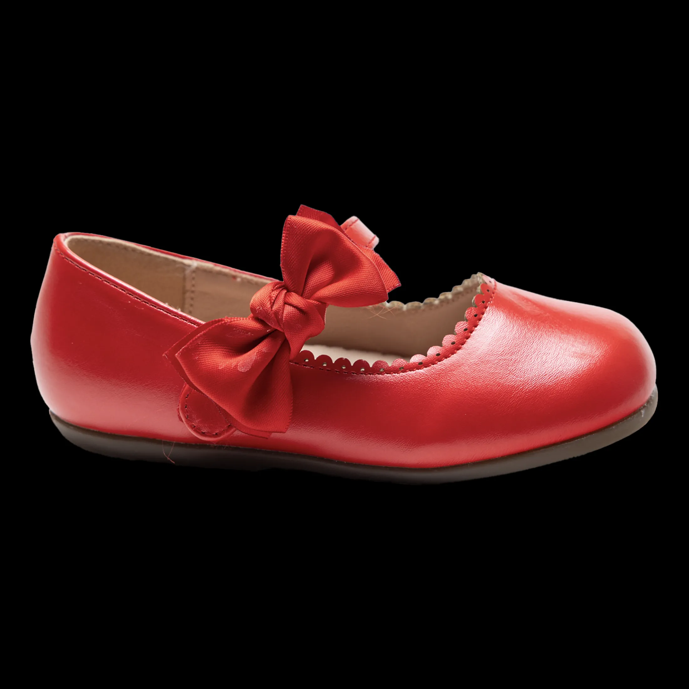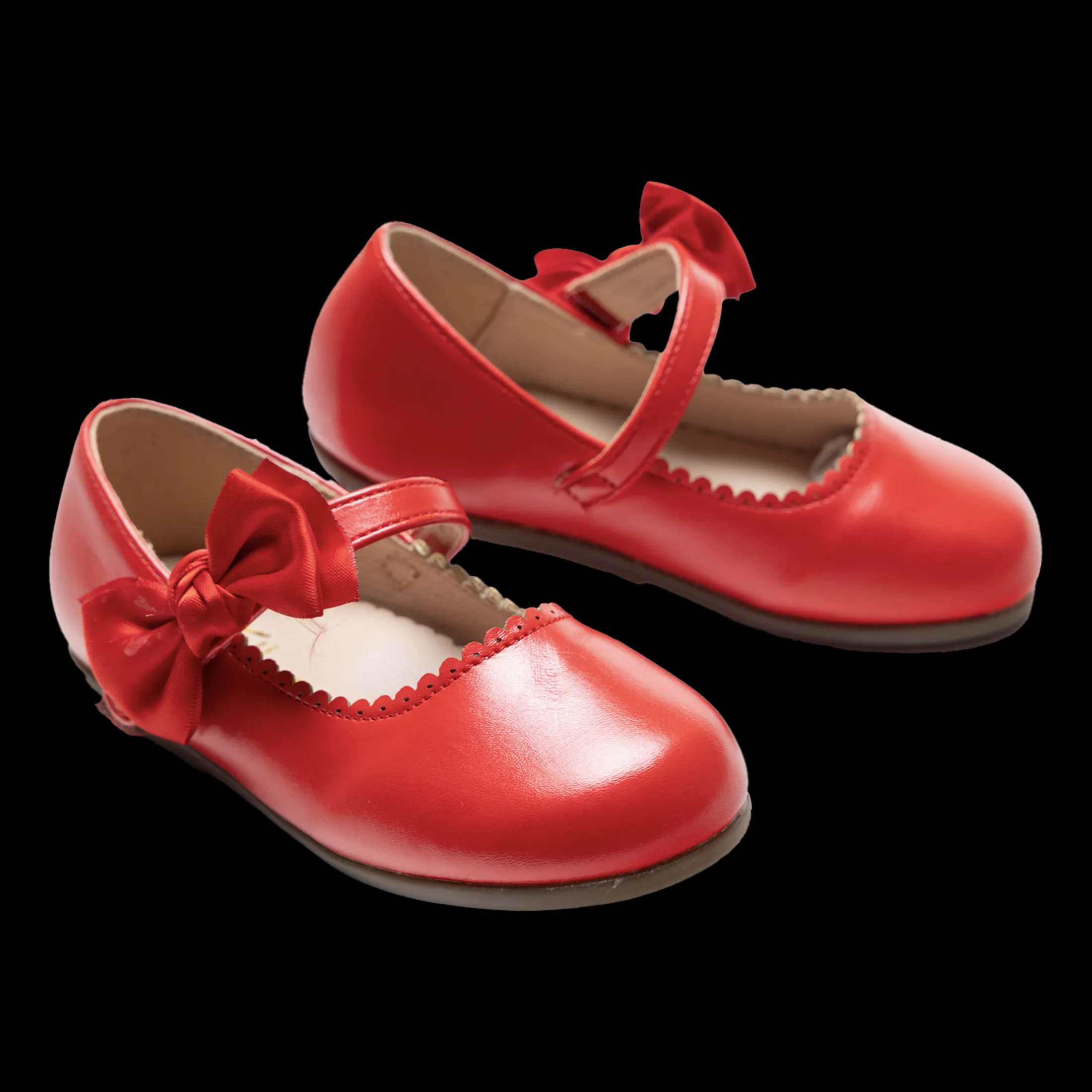 Blending comfort with classic style, the Red Satin Elodie Bow Flats by Tulleen offer a standout addition to any little girl’s wardrobe. With their rich color and exquisite craftsmanship, they bring a radiant charm to every step.